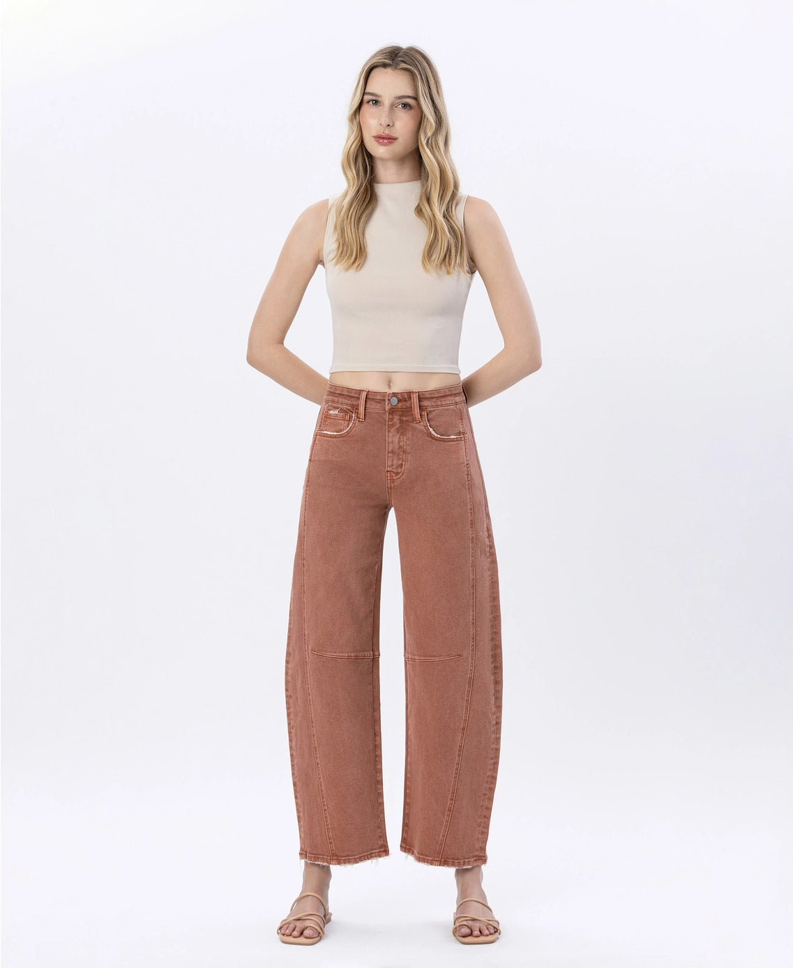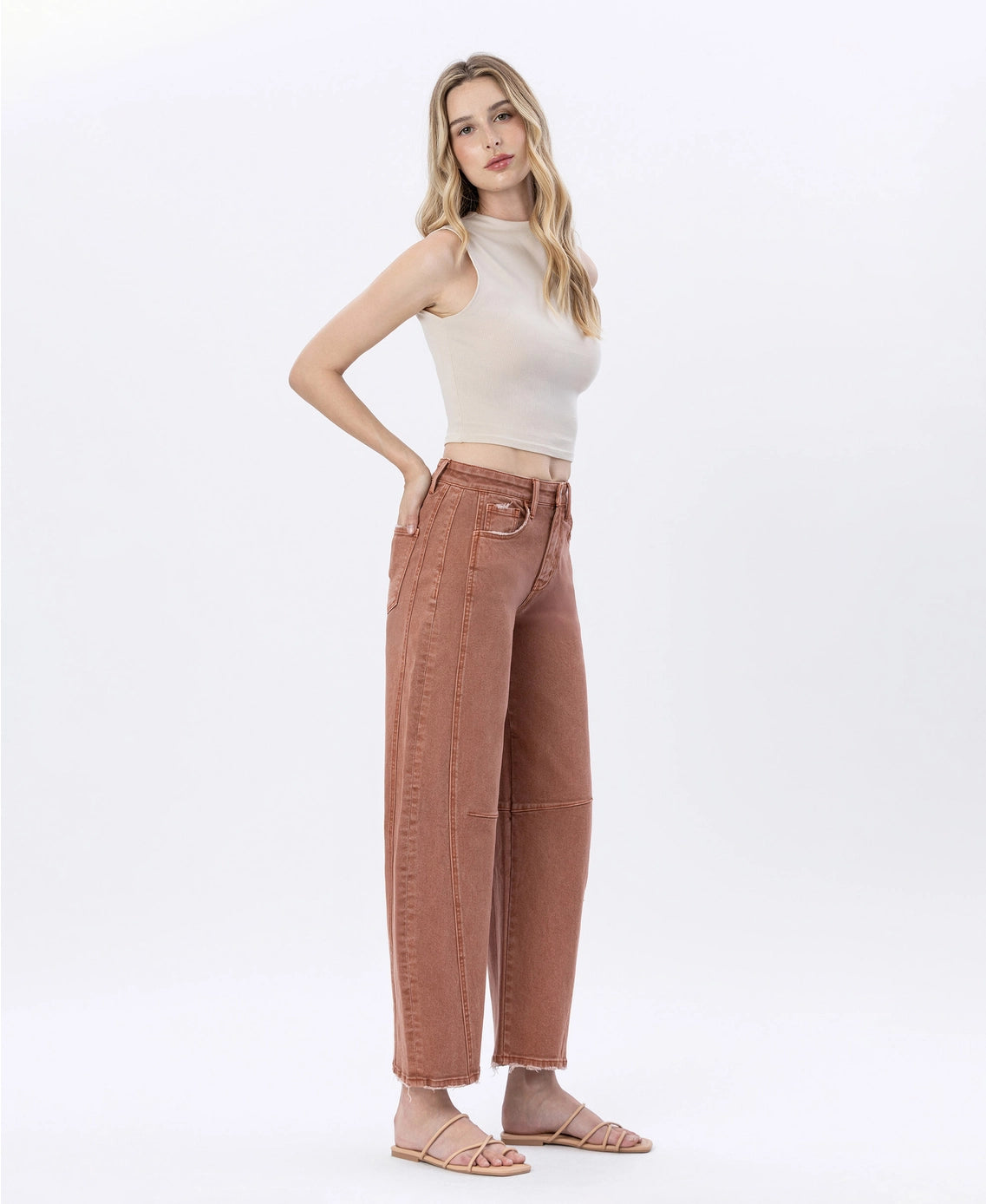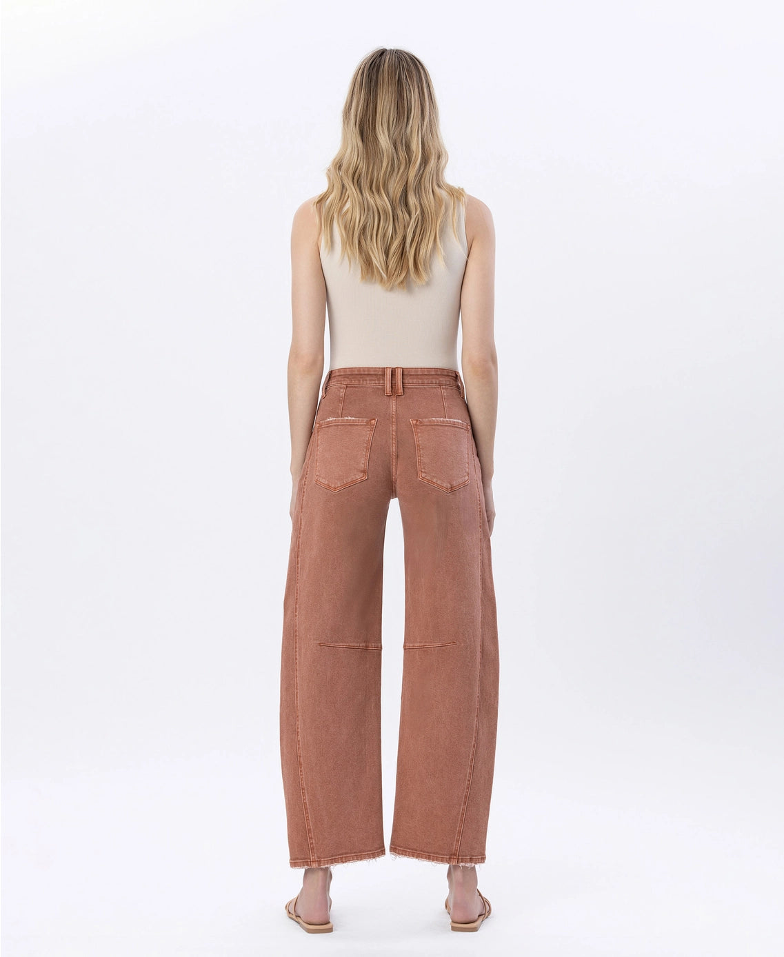 Turn heads in the Autumn Ember Barrel Jeans by Flying Monkey — the perfect statement piece for your denim collection. These twist barrel jeans feature a rich copper color that adds a warm, elevated touch to any outfit, while the comfort stretch denim and high-rise waist ensure a flattering, easy-to-wear fit.