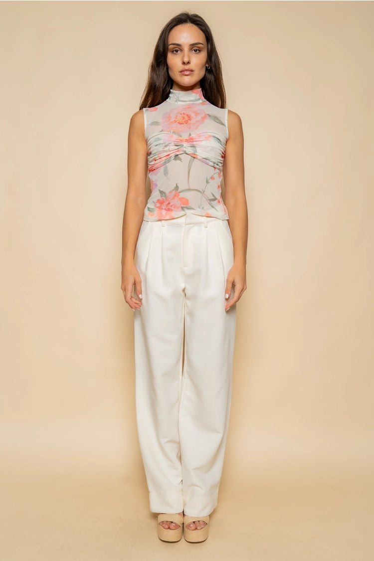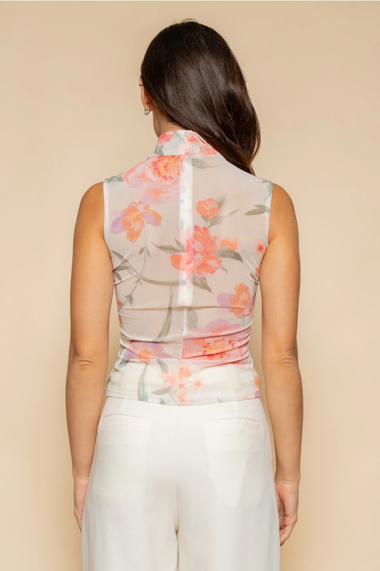 Elevate your everyday style with the Blush Bloom Mesh Top, a soft, romantic statement piece designed for effortless elegance. Featuring a delicate floral print on sheer mesh fabric, this sleeveless mock-neck top blends feminine charm with modern minimalism. The subtle ruched bust detail enhances the silhouette while the lightweight, breathable material makes it perfect for layering or wearing on its own.