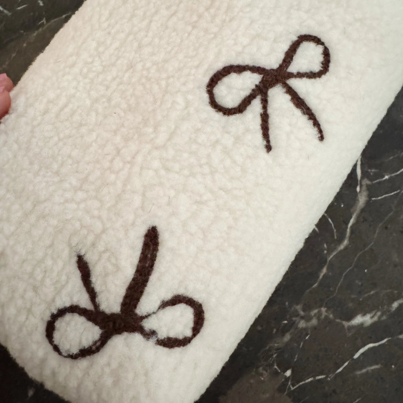 Add a touch of cozy luxury to your everyday routine with this brown sherpa cosmetics bag. Soft, plush, and thoughtfully designed, it features adorable embroidery and a bold leopard-print lining for a fun, stylish twist. Perfectly sized to hold all your essentials—makeup, skincare, or travel must-haves—this bag is as practical as it is chic.