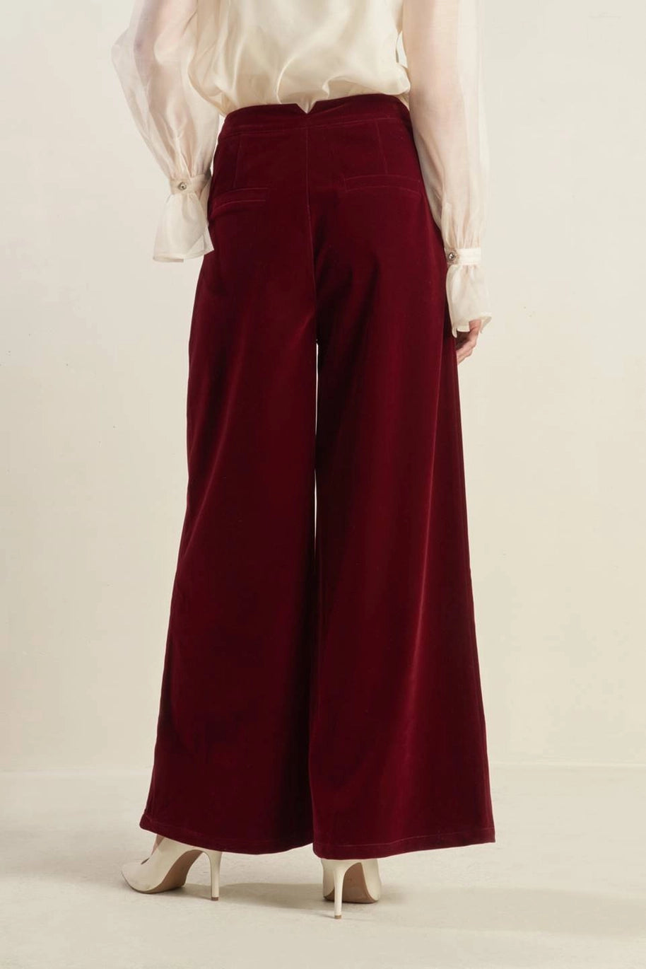 Cranberry Crisp Velvet Wide-Leg Trousers