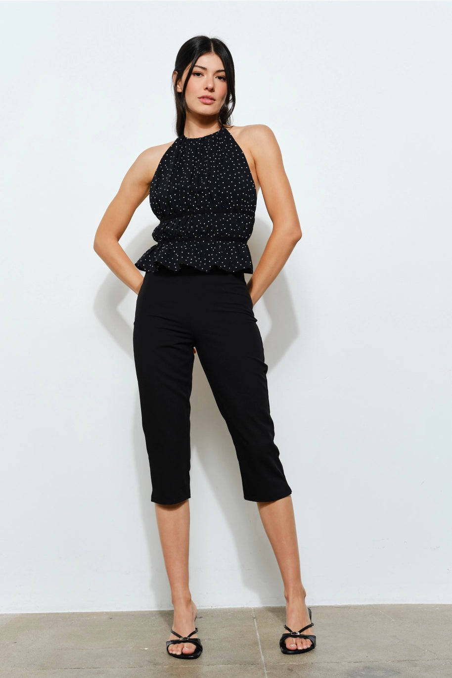 Bring playful sophistication to your wardrobe with our Dot & Dazzle Polkadot Smocked Halter Top. Featuring a timeless polkadot print, a flirty self-tie halter neck, and smocked detailing, this top combines comfort, stretch, and effortless style. The adjustable back ties add a feminine touch while allowing a perfect customizable fit, making it ideal for brunch dates, holiday gatherings, or nights out.