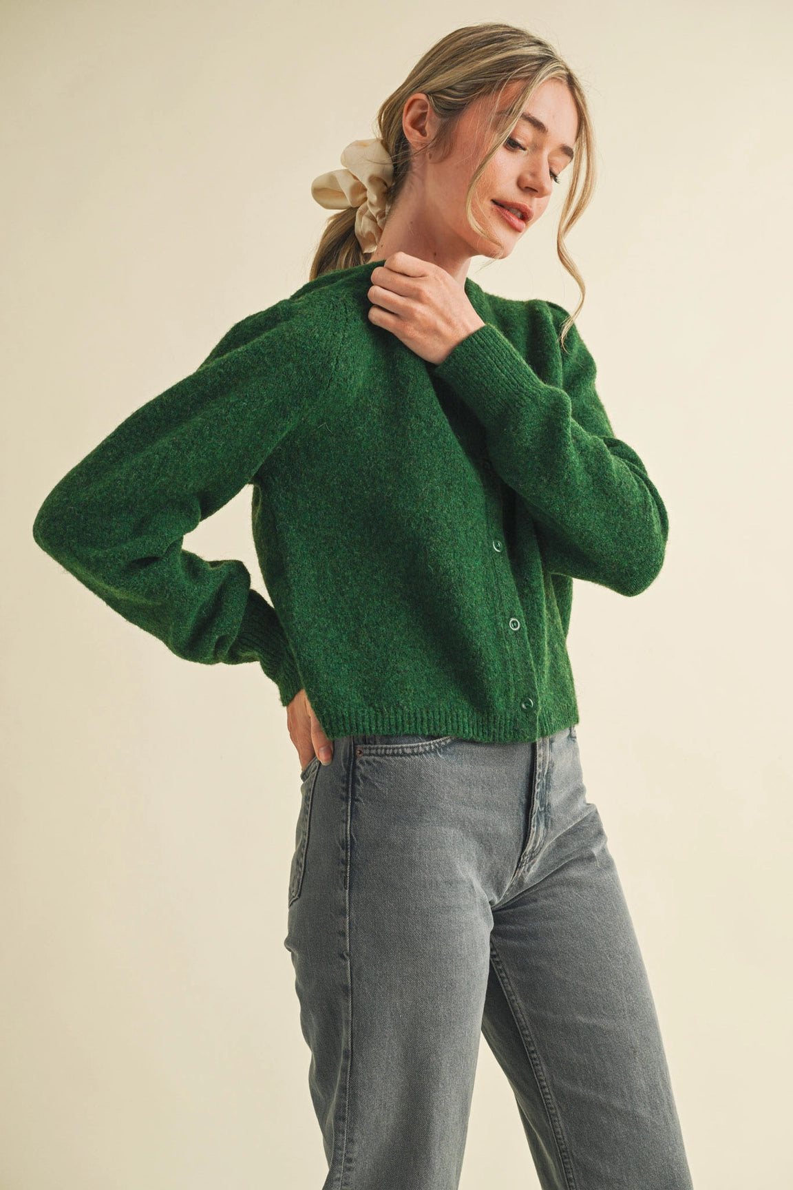 Everly Puff Sleeve Cardigan - Evergreen