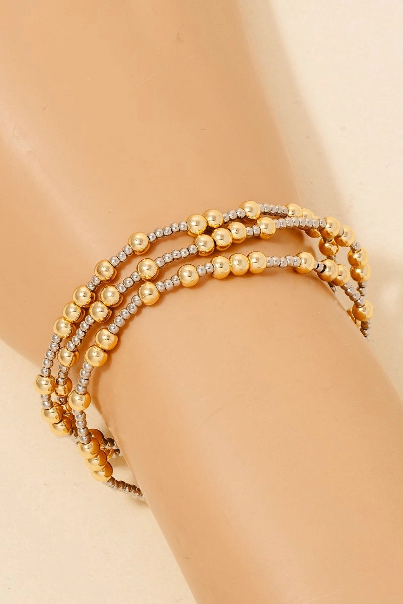 Gold Dipped 2 Tone Mixed Beaded Bracelet Set