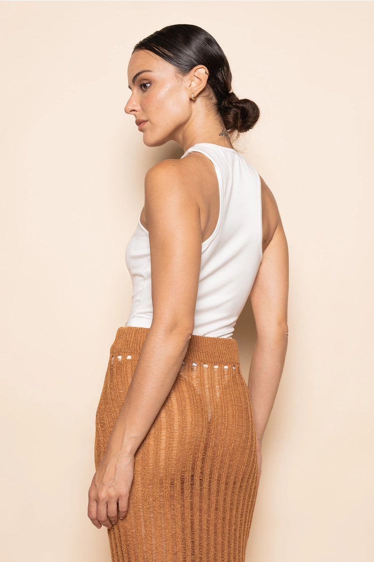A knit skirt for a modern chic resort outfit