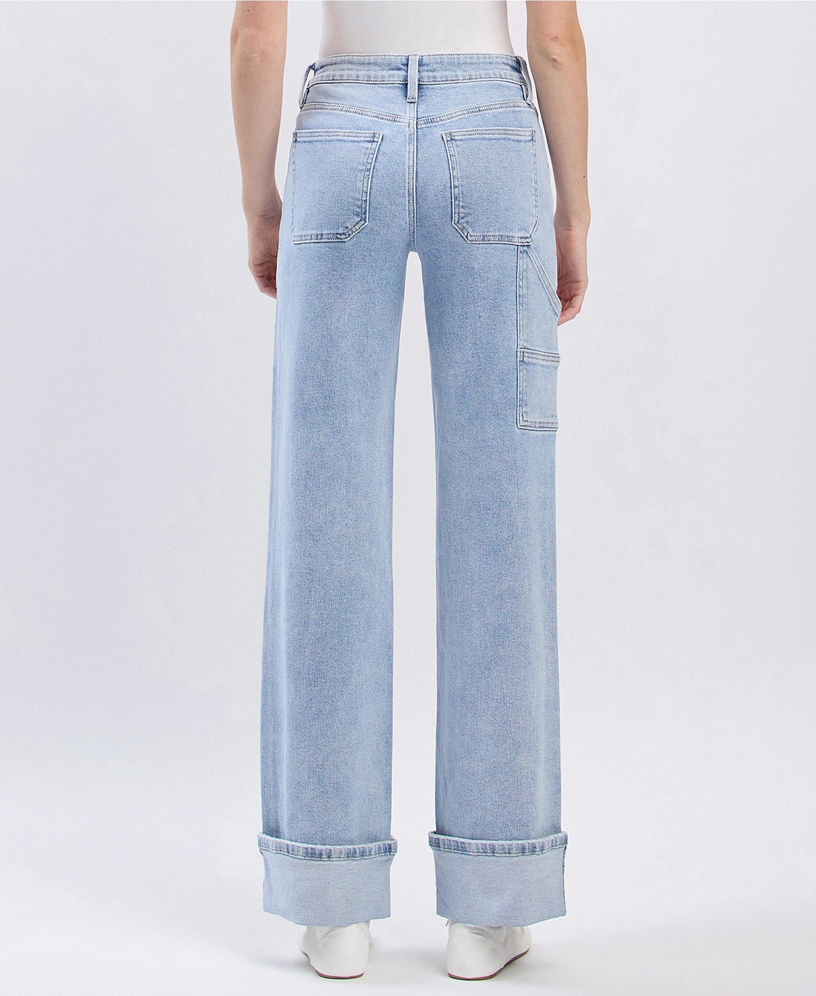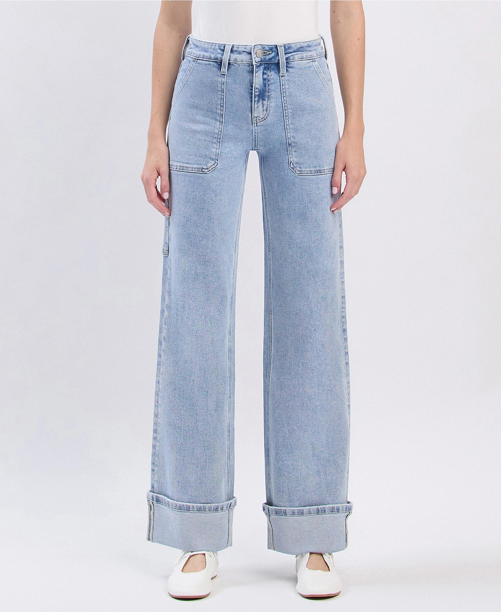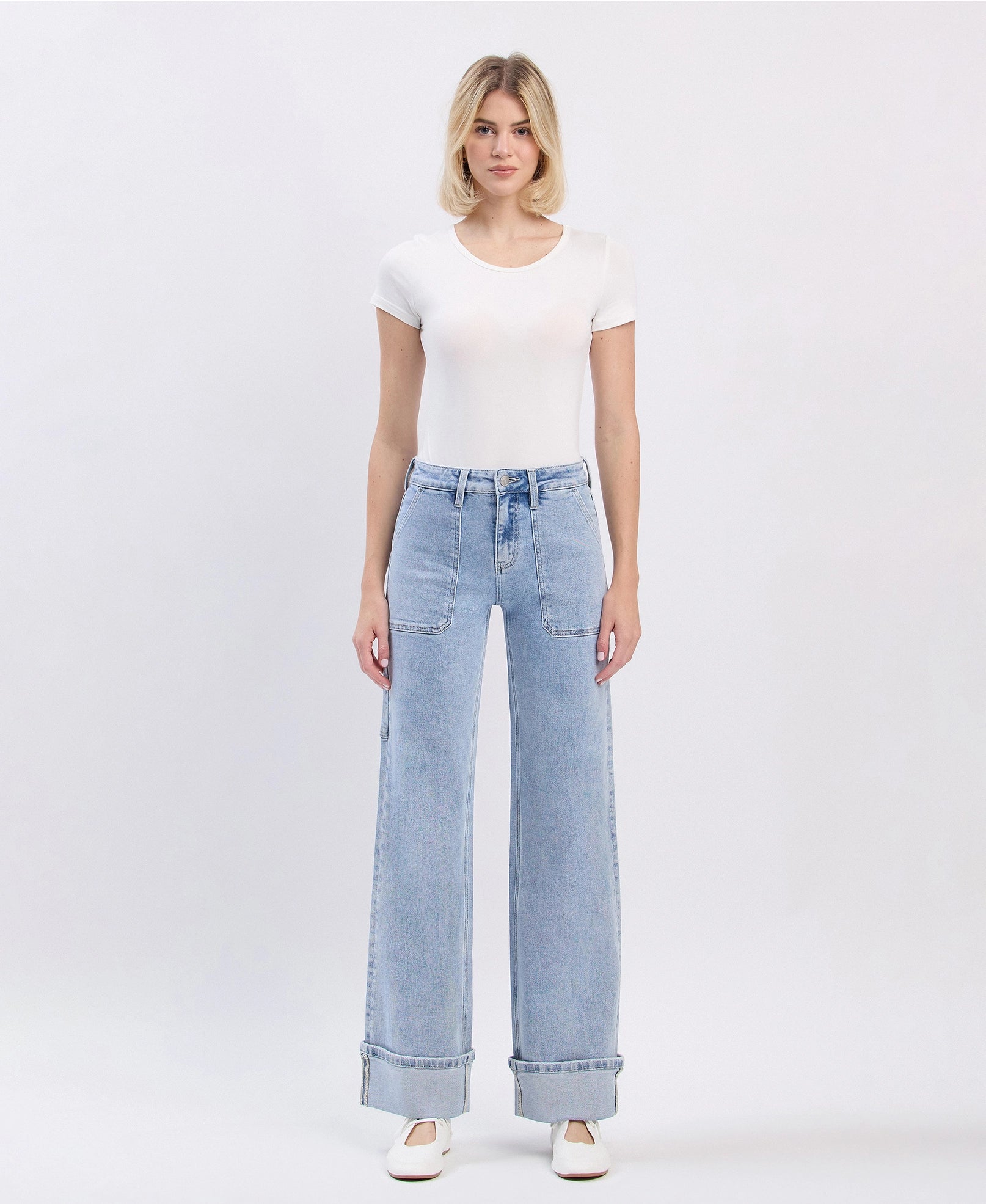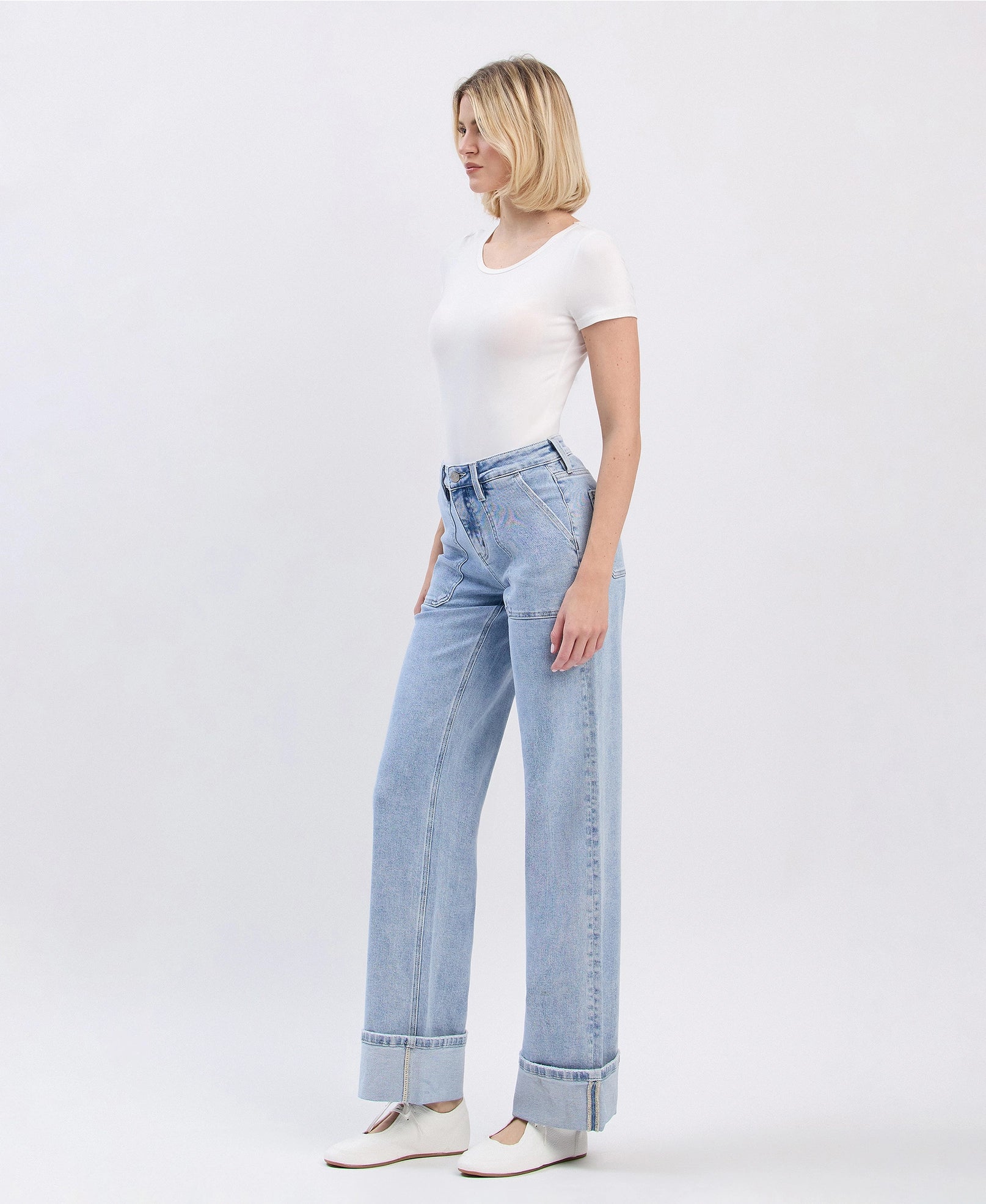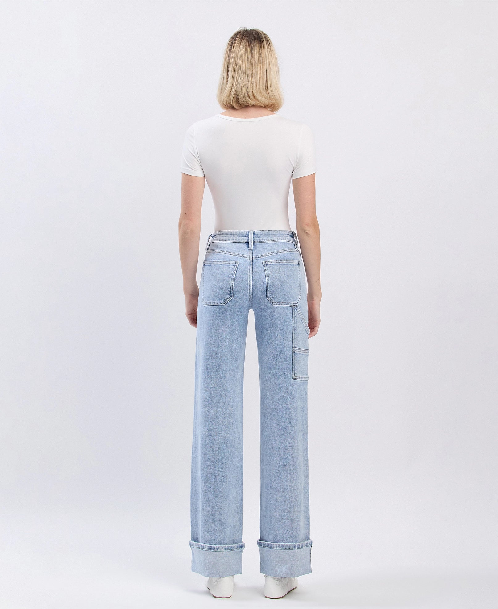 Flirt with comfort and style in these High Rise Cuff Denim jeans. With a high-rise waist that hugs in all the right places and playful carpenter pockets for that laid-back edge, these wide-leg wonders are your new go-to for effortless chic. The single cuff hem adds a touch of attitude, while the full-length fit keeps it sleek and modern. Perfect for a casual day out or a night that needs just a bit of extra flair. Pair with sneakers or heels for a more elevated look.