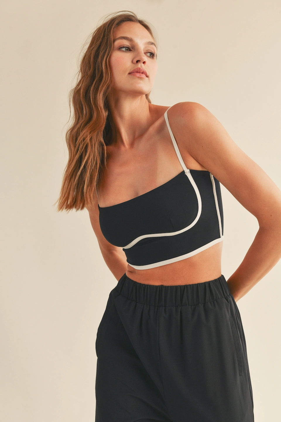 Meet the ultimate blend of style and support: our LuxeLine Adjustable Contrast Top! Featuring a built-in shelf bra for light to medium support, this top is designed with sleek piping details and adjustable straps to give you a personalized fit. Whether you’re hitting the gym or lounging in style, it’s your go-to for effortless comfort and chic appeal.