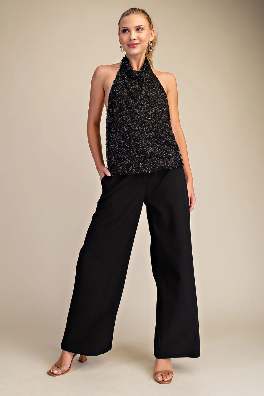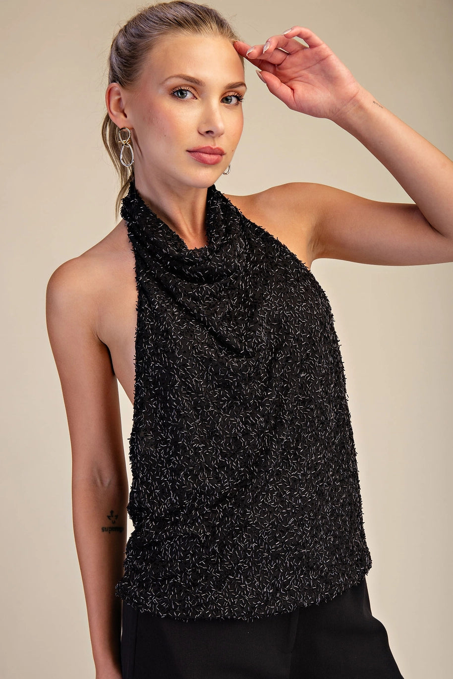 Midnight Beaded Halter Top