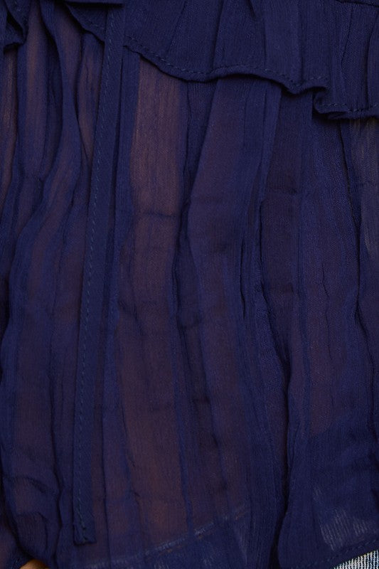 Ruffle navy scoop neck blouse