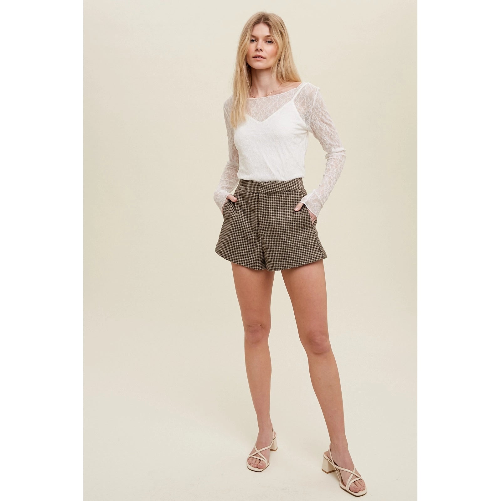 The Blair Check Shorts bring timeless pattern and modern tailoring into one effortlessly chic fall staple. Designed with a hook-and-eye and zipper closure, these relaxed fit plaid shorts feature side and back pockets for both function and style.