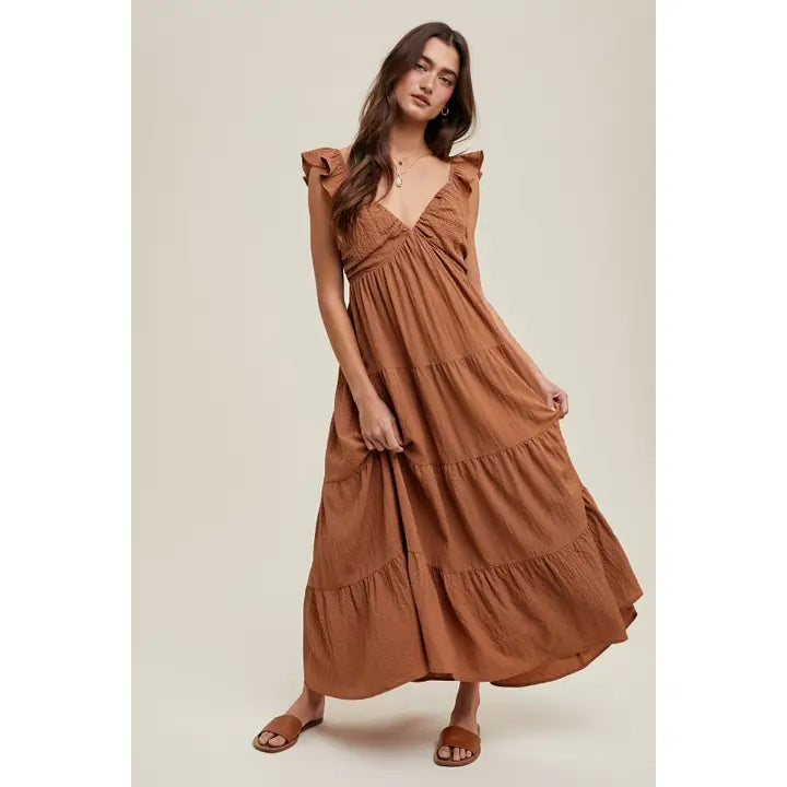 The Harvest Breeze Midi Dress is the definition of relaxed elegance — made for women who want effortless style from summer into fall. Designed with a soft, textured fabric that moves with you, this breezy midi features side pockets, ruffle sleeves, and a comfortable, flowy tiered silhouette that flatters every shape.