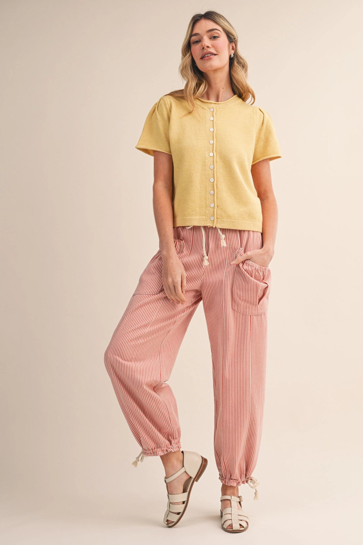 Style it buttoned up with our Soleil Stripe Pant for a polished spring look, or pair it with denim for an elevated everyday outfit. Breathable, versatile, and endlessly chic — this butter yellow cardigan is a standout essential for the season.