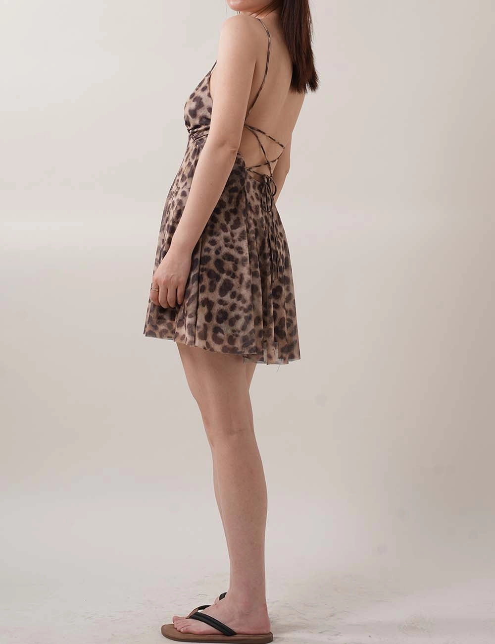 Unleash your inner it-girl in The Wild Instinct Dress — a sultry, lightweight mini that blends bold animal print with a delicate, barely-there silhouette. This leopard print mini dress features a flattering v-neckline, adjustable spaghetti straps, and a criss-cross lace-up back that makes a statement from every angle.