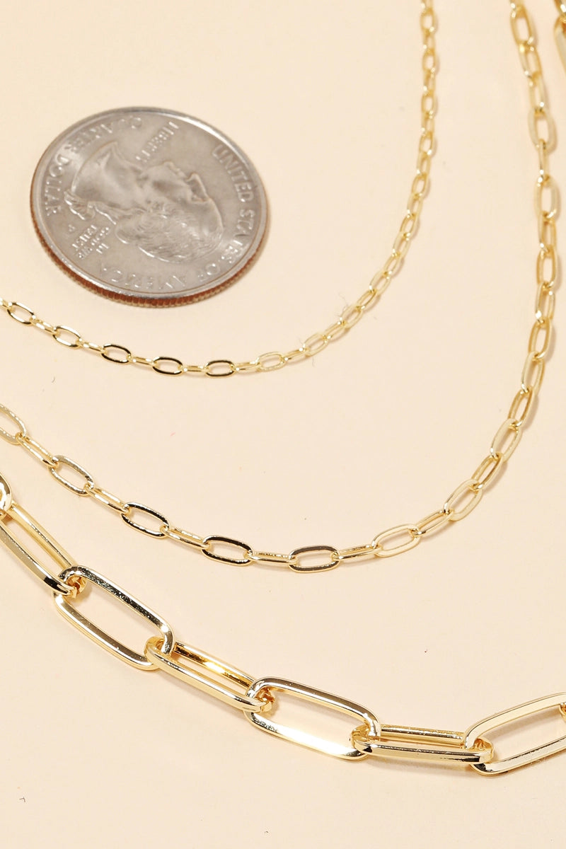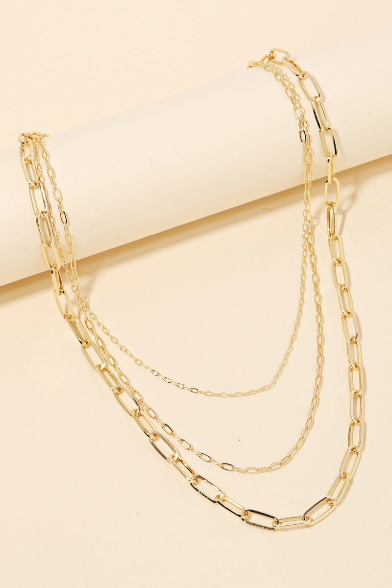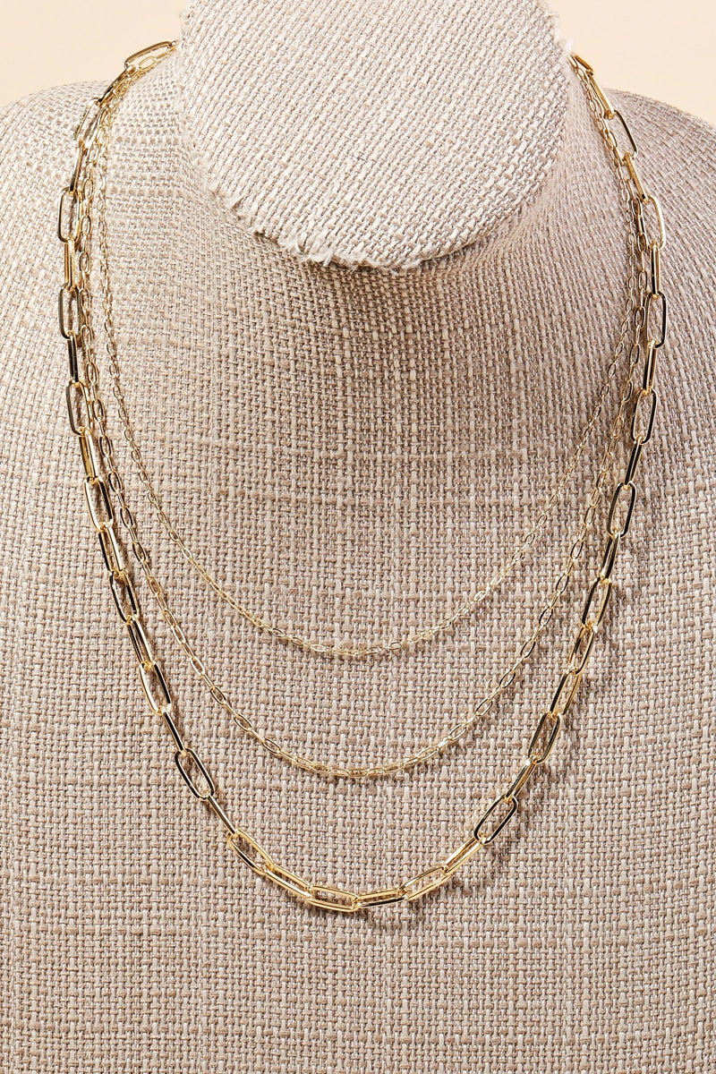 A trending in season must have necklace that features a gorgeous triple oval chain link necklace design.