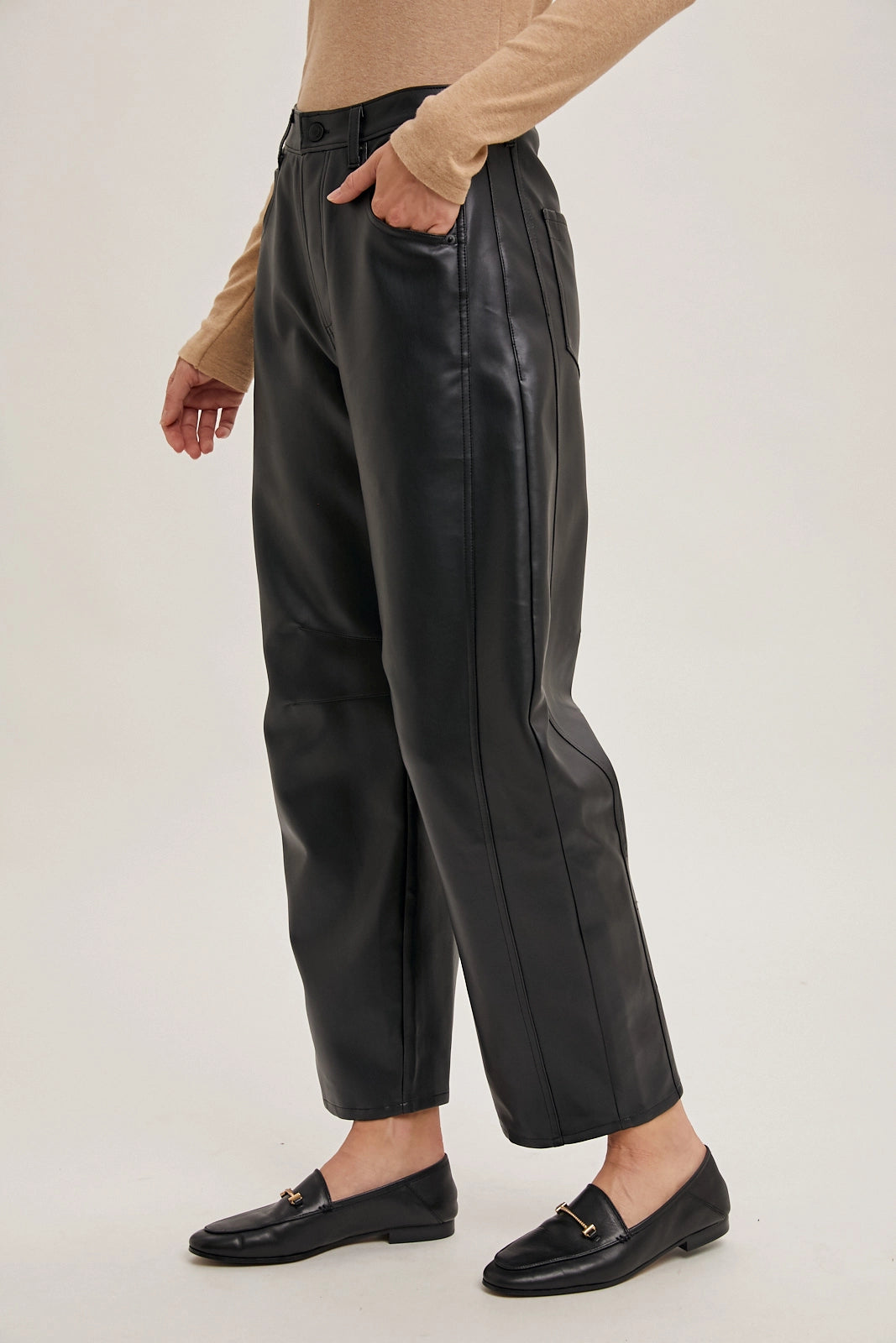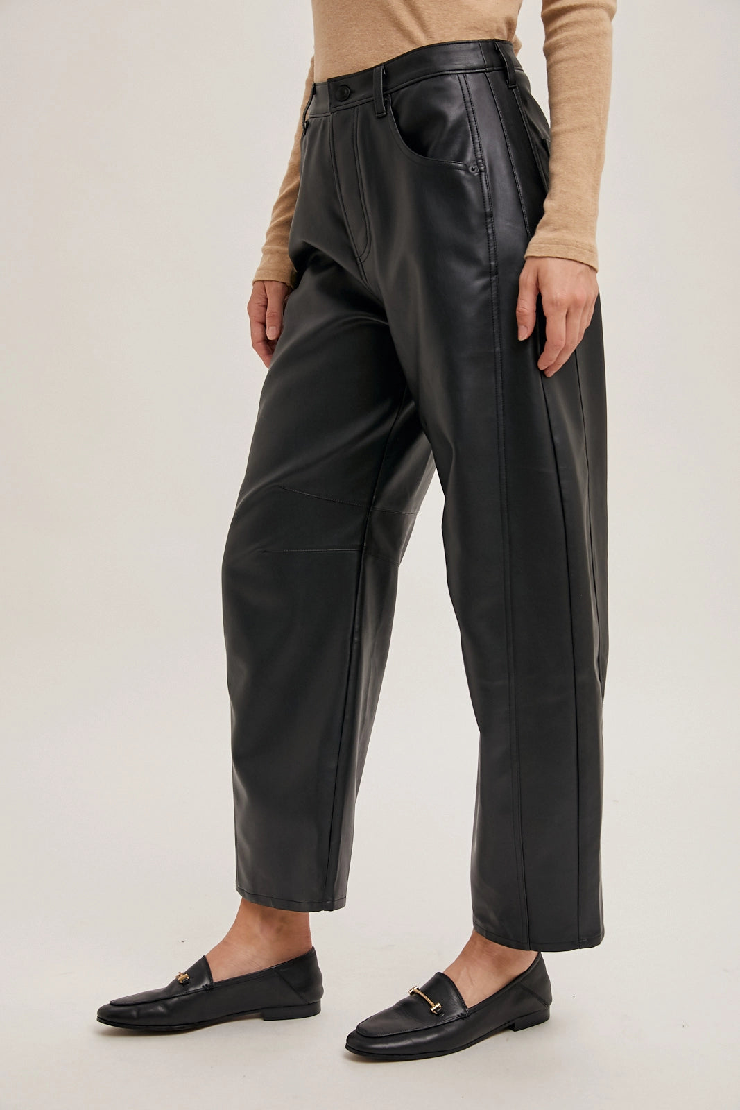 Step up your street style with the Vegan Faux Leather Barrel Pant — cruelty-free, cool, and seriously chic.